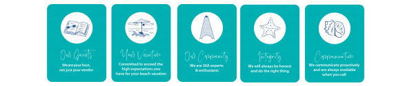 Not all vacation homes are alike, and not all vacation rental companies are equal. Grayt 30A is an independent, locally owned and managed company. Our whole team lives in the area and shares a passion for the communities along 30A. We are a Premier Host on Vrbo, professionally certified in Vacation Rental Management by the Vacation Rental Management Association (VRMA), and year after year winner of the Best Boutique Vacation Rental Company (less than 50 units) category in the Perfect in Walton County awards.